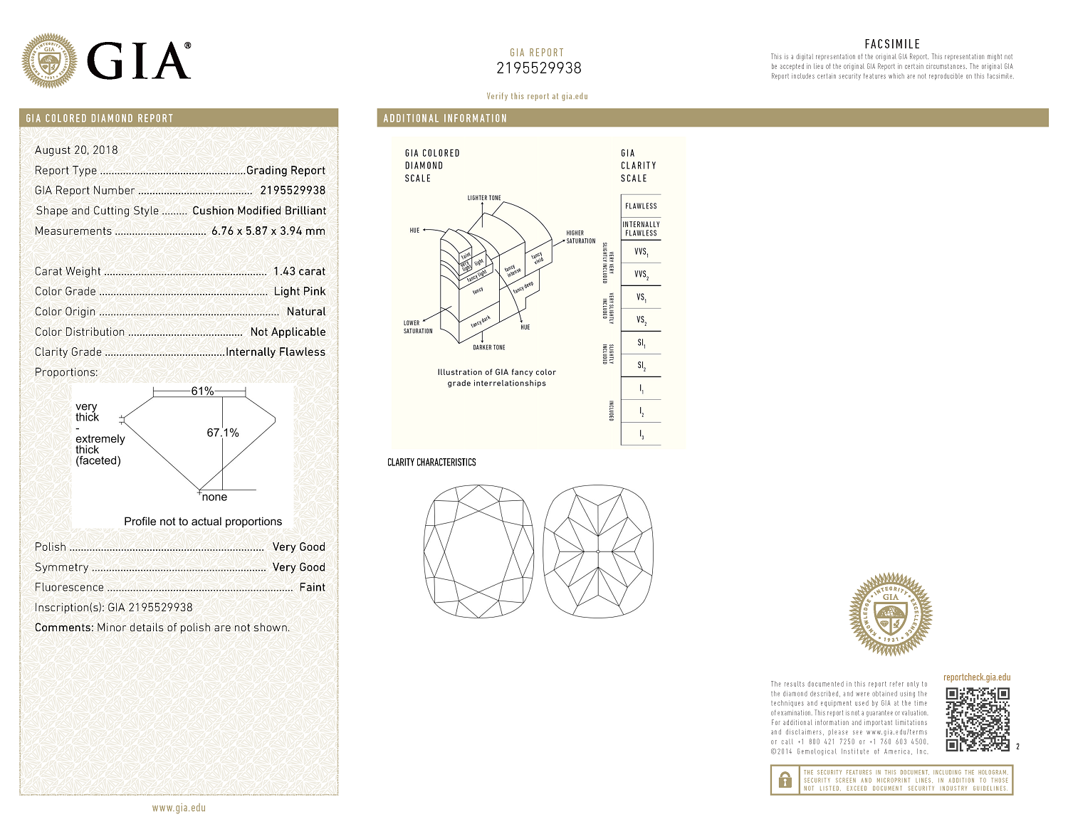 Colour: Light Pink, Clarity: Internally Flawless, Carat Weight – 1.43